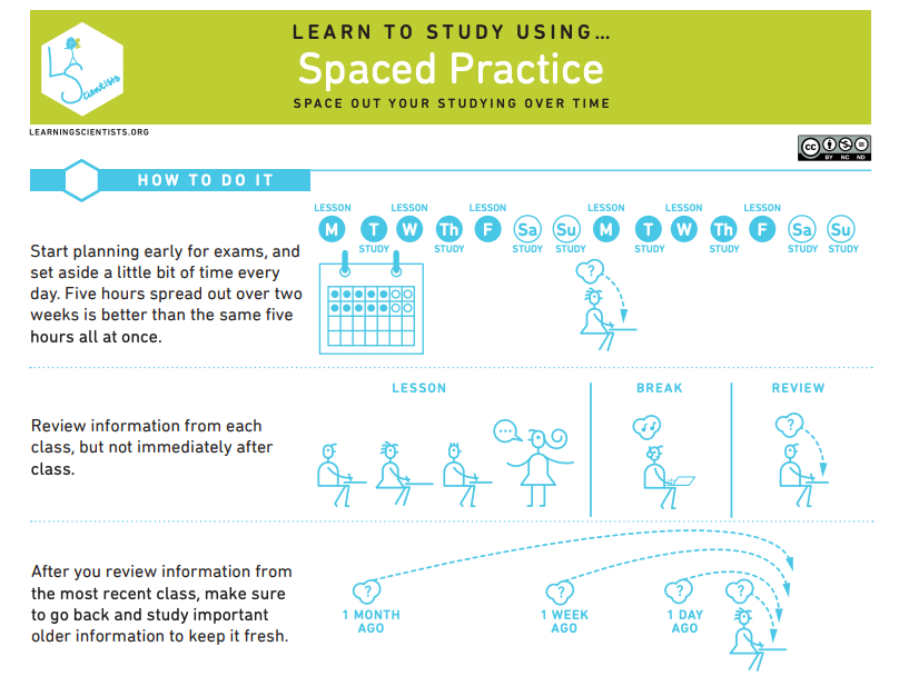 The science of learning is continually advancing as learning scientists continue to uncover the best research-based strategies students can use to help themselves. Here are six essential ways students can help themselves learn from the Learning Scientists (link opens in a new tab). Click the images below to learn more about each strategy in a visual PDF.